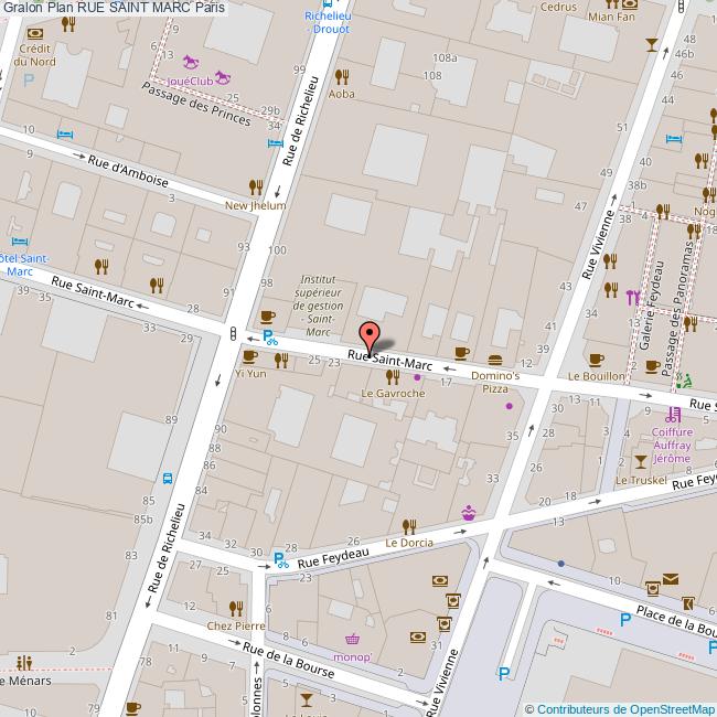 Rue Neuve-Saint-Marc. C'est une des rues percées vers l'an 1784, par lettres-patentes à la date du 18 février 1780. Celles-ci indiquent qu'il sera ouvert aux frais d' Étienne-François duc de Choiseul-Amboise et de son épouse, sur le terrain de leur hôtel et jardin, et en continuité de la rue Saint-Marc 3 . Cette rue de 25 pieds de.