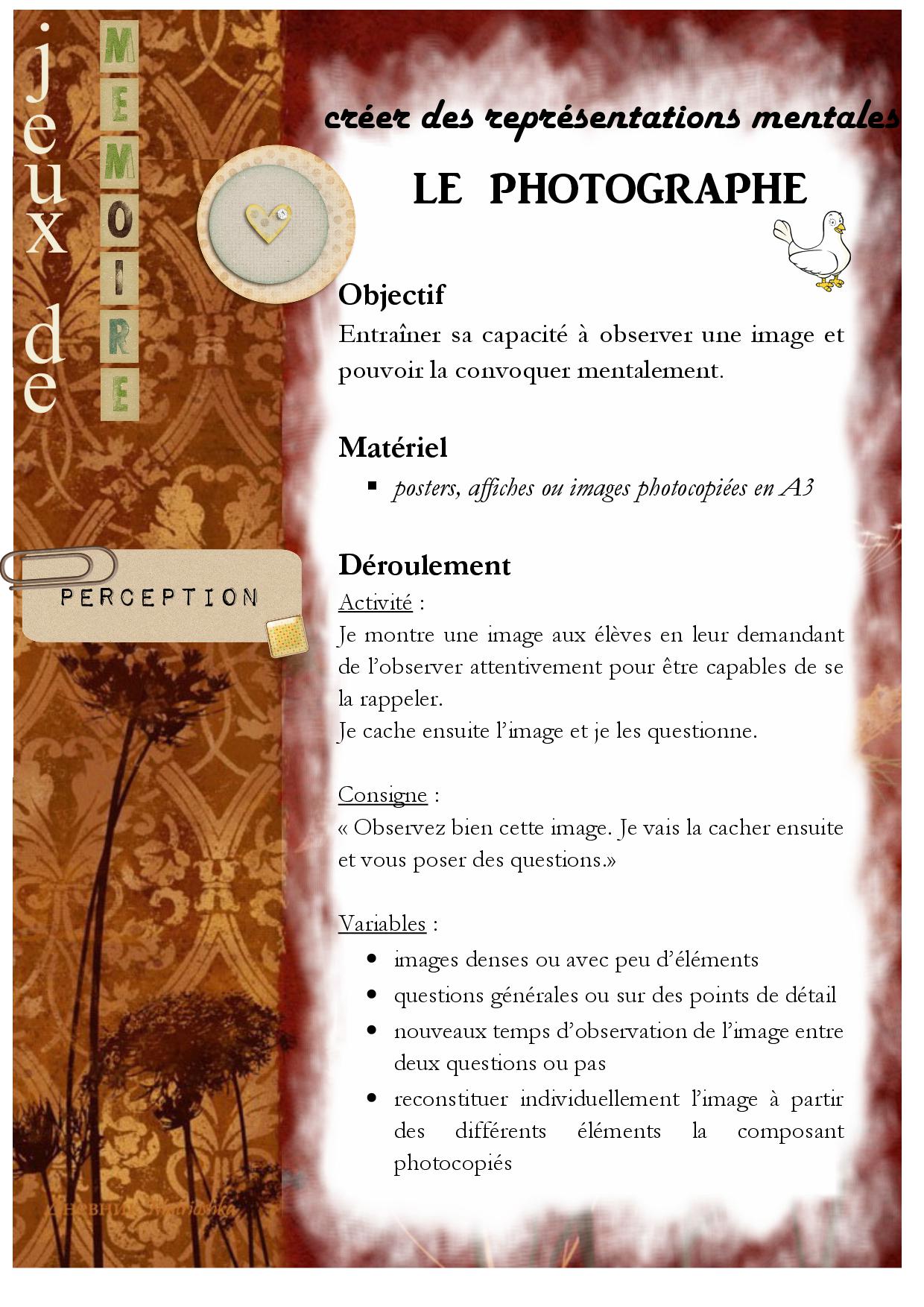 Le photographe Fiches de préparations (cycle1cycle 2ULIS)