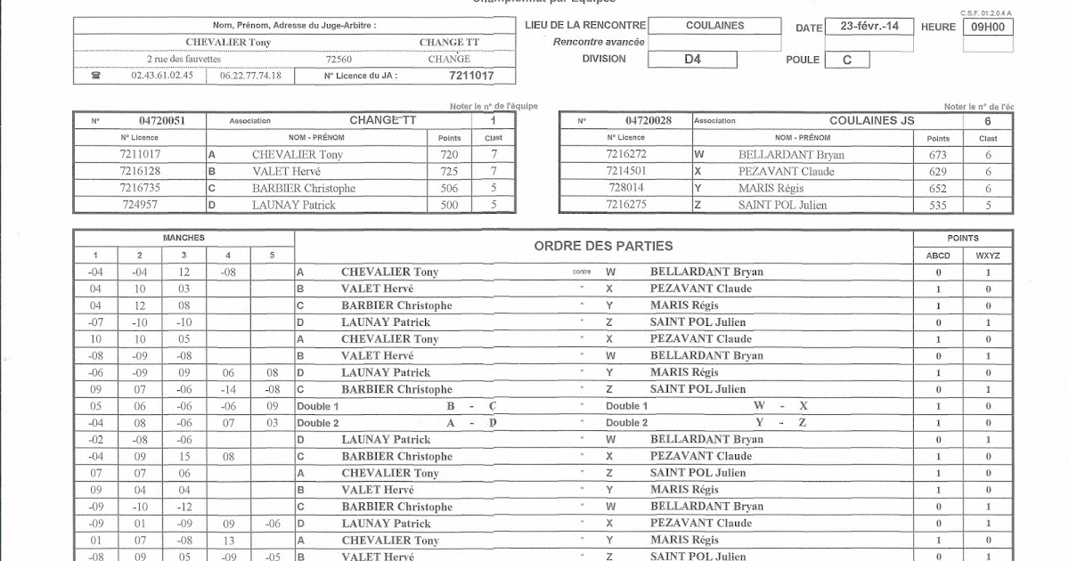 Comment remplir une feuille de match... (chpt paris) AS PIERREFITTE Tennis De Table