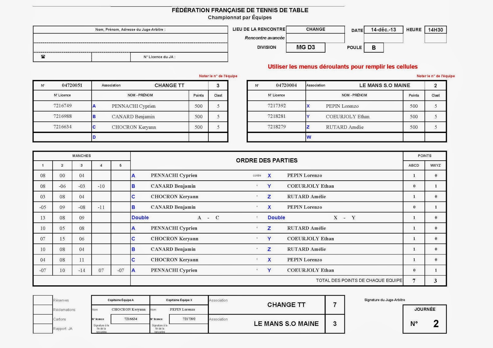 Guide pour remplir la feuille de match. mercredi 23 janvier 2013. par USF Tennis de Table. popularité : 22%. En 2 pages et un schéma : comment ne pas se tromper pour remplir une feuille de match.
