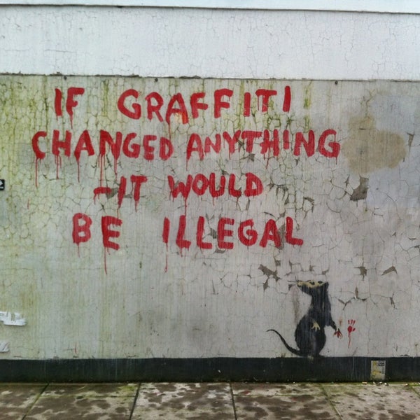 Banksy's If Graffiti Changed Anything It Would Be Illegal mural is located on a wall on Clipstone Street, Fitzrovia and appeared overnight on Easter Monday in 2011. It depicts one of Banksy's iconic rats underneath the writing in red reading, "If graffiti changed anything, it would be illegal". This is a reference to a quote by 20th century political activist Emma Goldman who.