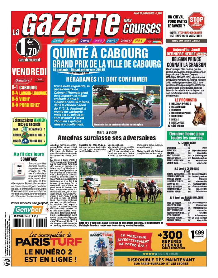 La Gazette des Courses N°20230720 du 20 juillet 2023 à télécharger sur iPad