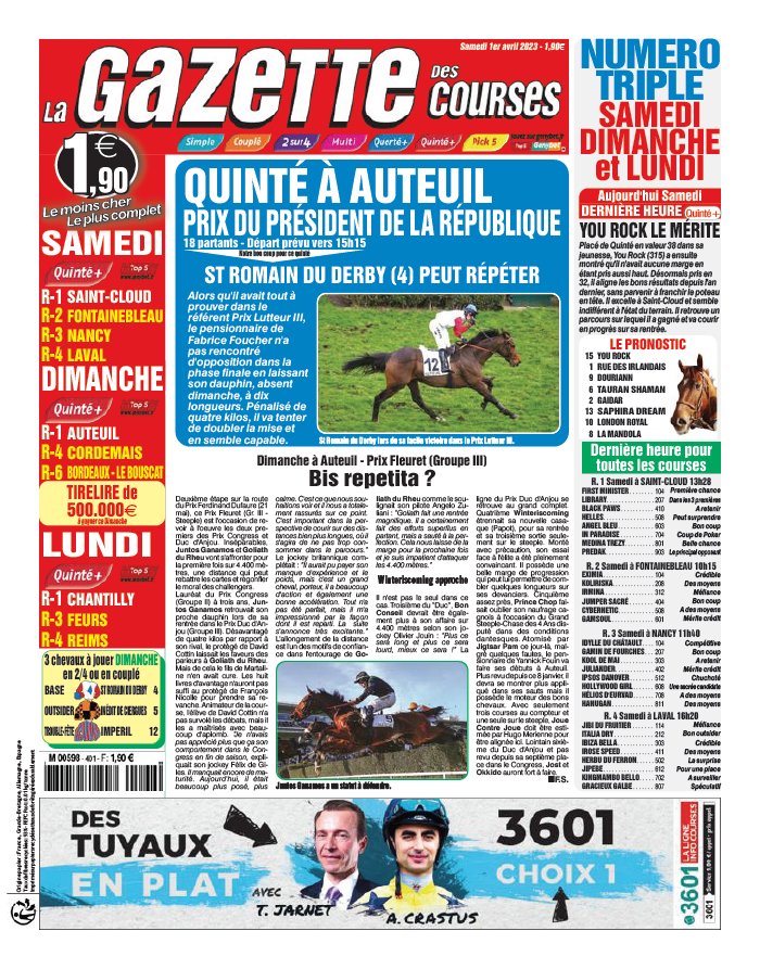 La Gazette des Courses N°20230401 du 01 avril 2023 à télécharger sur iPad
