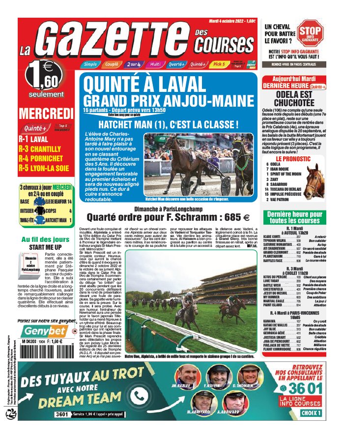 La Gazette des Courses N°20221004 du 04 octobre 2022 à télécharger sur iPad