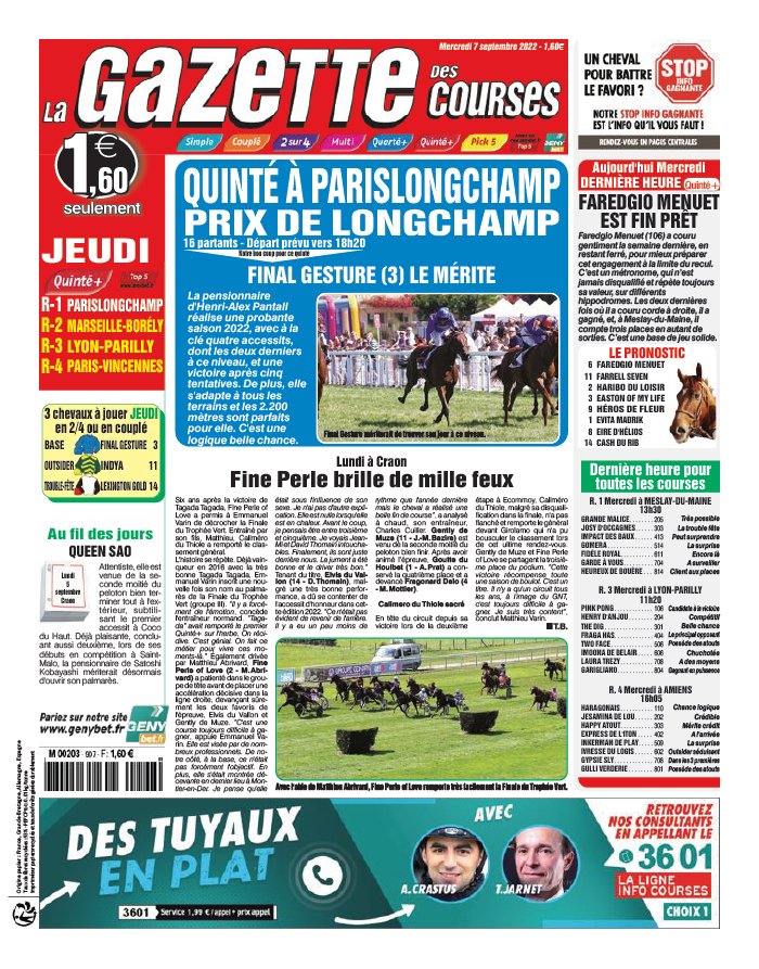 La Gazette des Courses N°20220907 du 07 septembre 2022 à télécharger sur iPad
