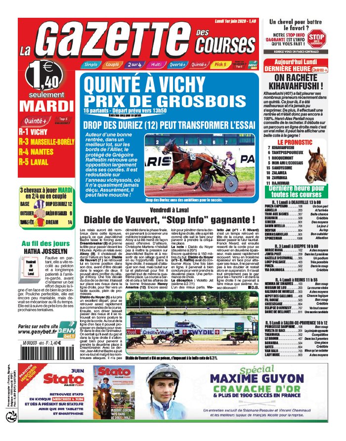 La Gazette des Courses N°20200601 du 01 juin 2020 à télécharger sur iPad