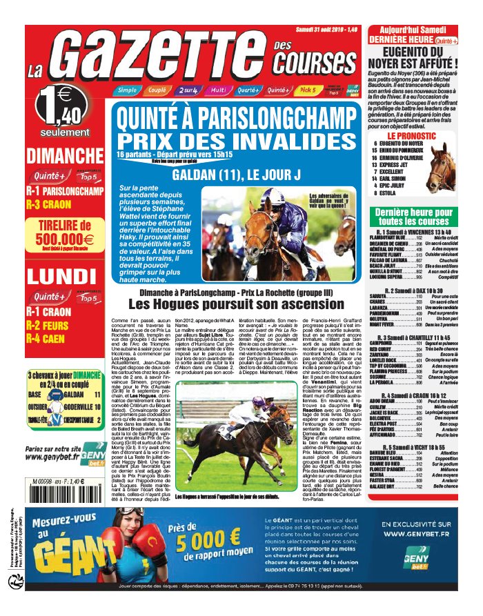 La Gazette des Courses N°20190831 du 31 août 2019 à télécharger sur iPad