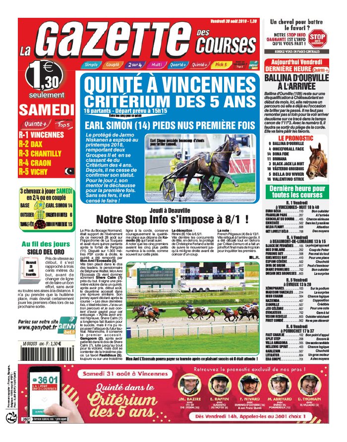 La Gazette des Courses N°20190830 du 30 août 2019 à télécharger sur iPad