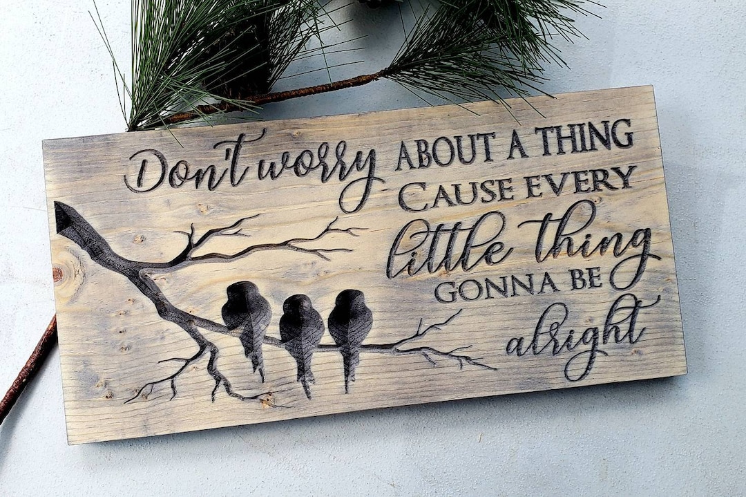 Bob Marley Three Little Birds Wood Sign, Song Lyric, Inspirational Wall Plaque, Best Friend Gift